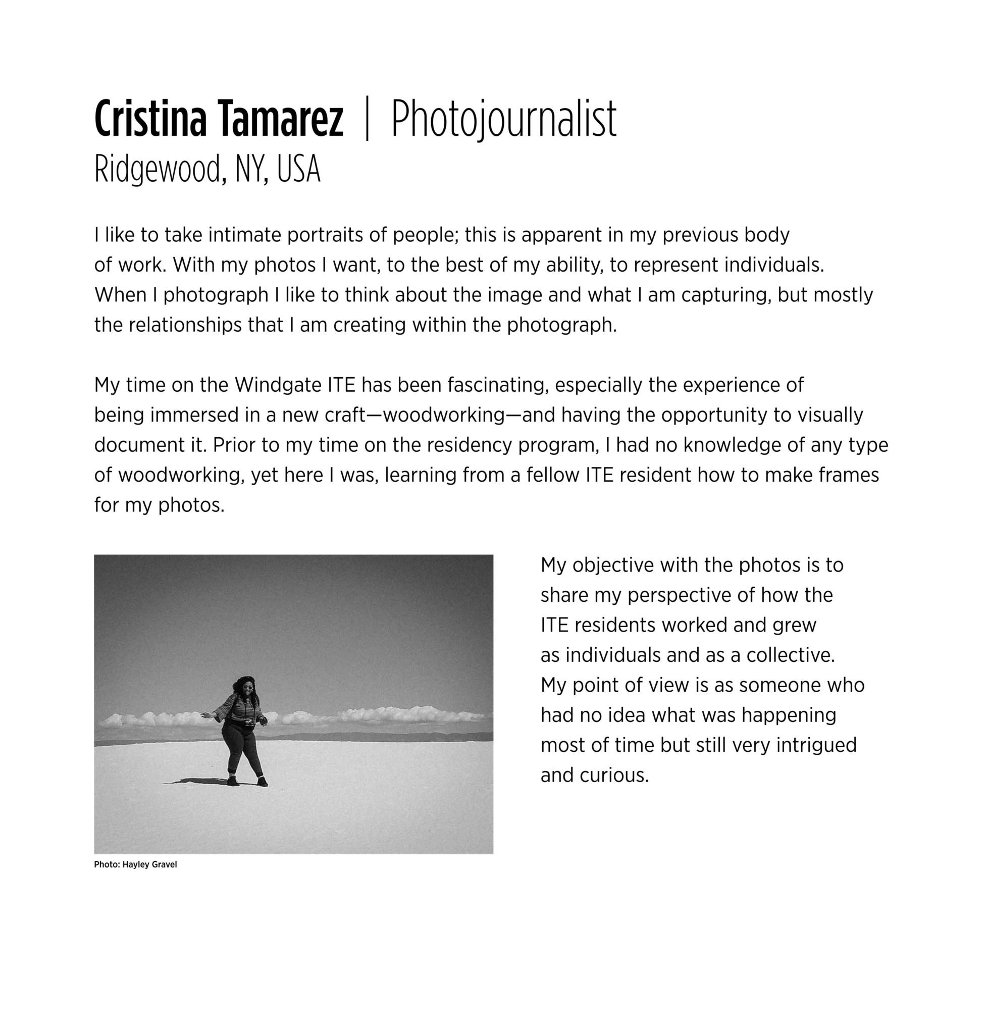 The 2018 Windgate ITE Resident Fellows are: Cha Jong-Rye, Artist (Gyeonggi do, Korea); Vivian Chiu, Artist (NY, USA); Morgan Hill, Artist, (NC, USA); Jack Mauch, Artist (MA, USA); Michael Puryear, Artist (NY, USA); Janine Wang, Student artist (NY, USA); Cristina Tamarez, Photojournalist (NY, USA); Seán Breen, Scholar (Connacht, Ireland)