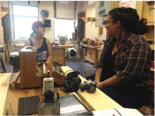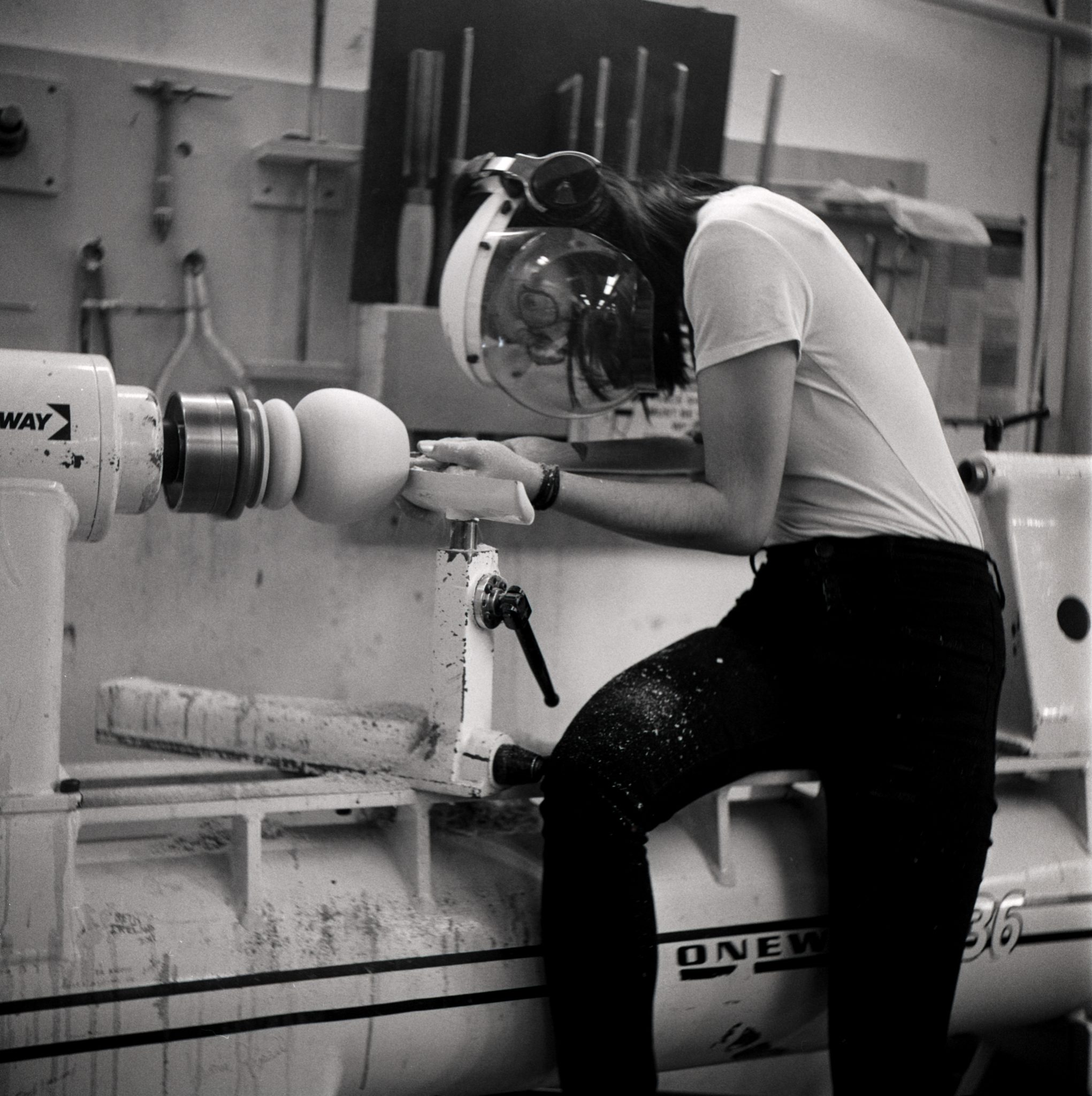 The physical layout of the UArts facilities was equally important to the successful cross-pollination amongst residents. The separation of the machine room and benchroom allowed for conversations to happen naturally in a calmer, quieter environment. These marvelous conversations at workbenches, which are side by side, often started upon seeing a fellow resident trying a new technique, actively seeking support, and frequently when the time came to eat. They were unlabored and provided much stimulus and, I would argue, are as valuable to the wholeness of the residents as the magnificent objects they have gone on to produce. Tara Inman-Bellofatto, the wood shop technician, is attentive to the needs of the residents and this helps to smooth the day’s ebb and flow.