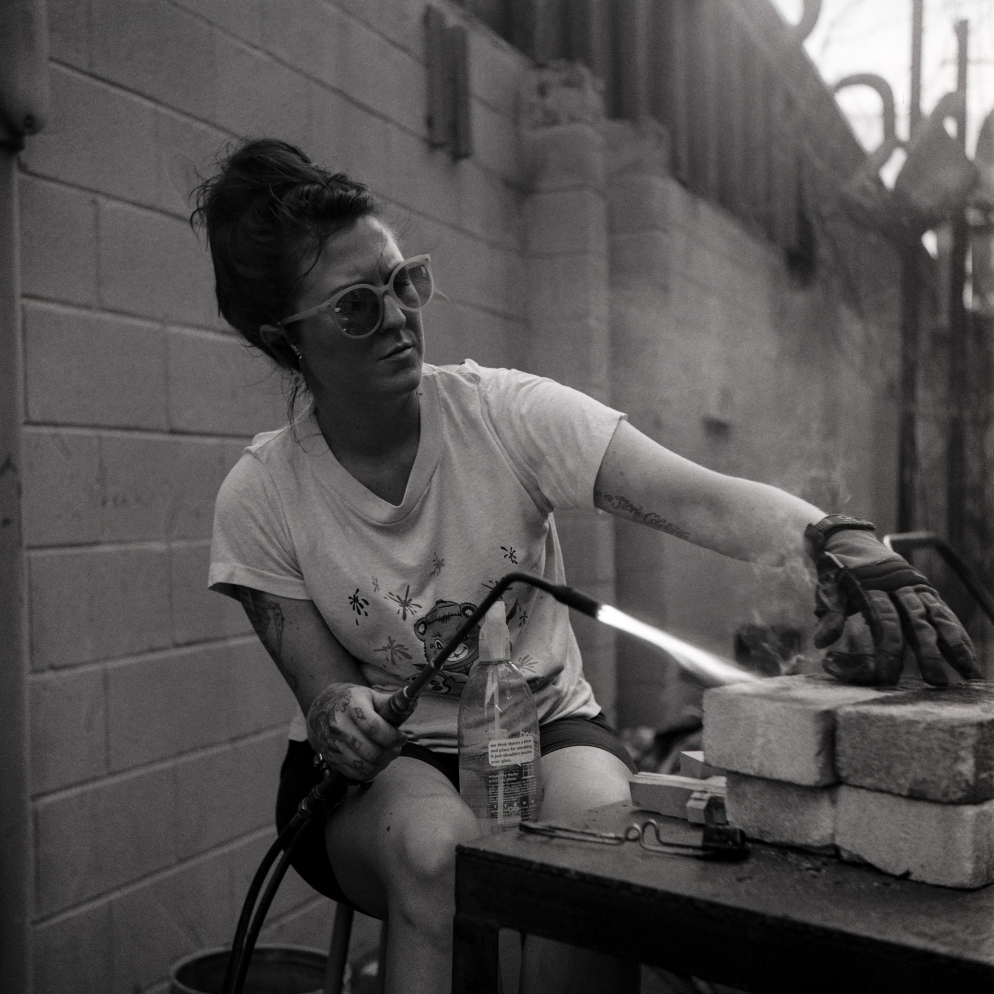 Jack Mauch has a varied basis of stimulation in his process, much like my own in fact, including but certainly not limited to decorative arts, tessalations, tilework, and product design. The opportunity to see other makers’ processes in close proximity is a natural valuable occurrence on residencies. Indeed, a prior instance of residency cross-pollination led to his exploration of sand shading. Residencies serve to galvanize approaches and provide drive in one’s work.