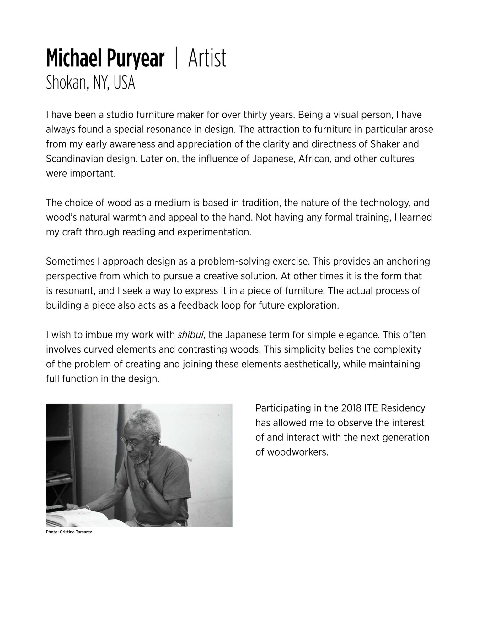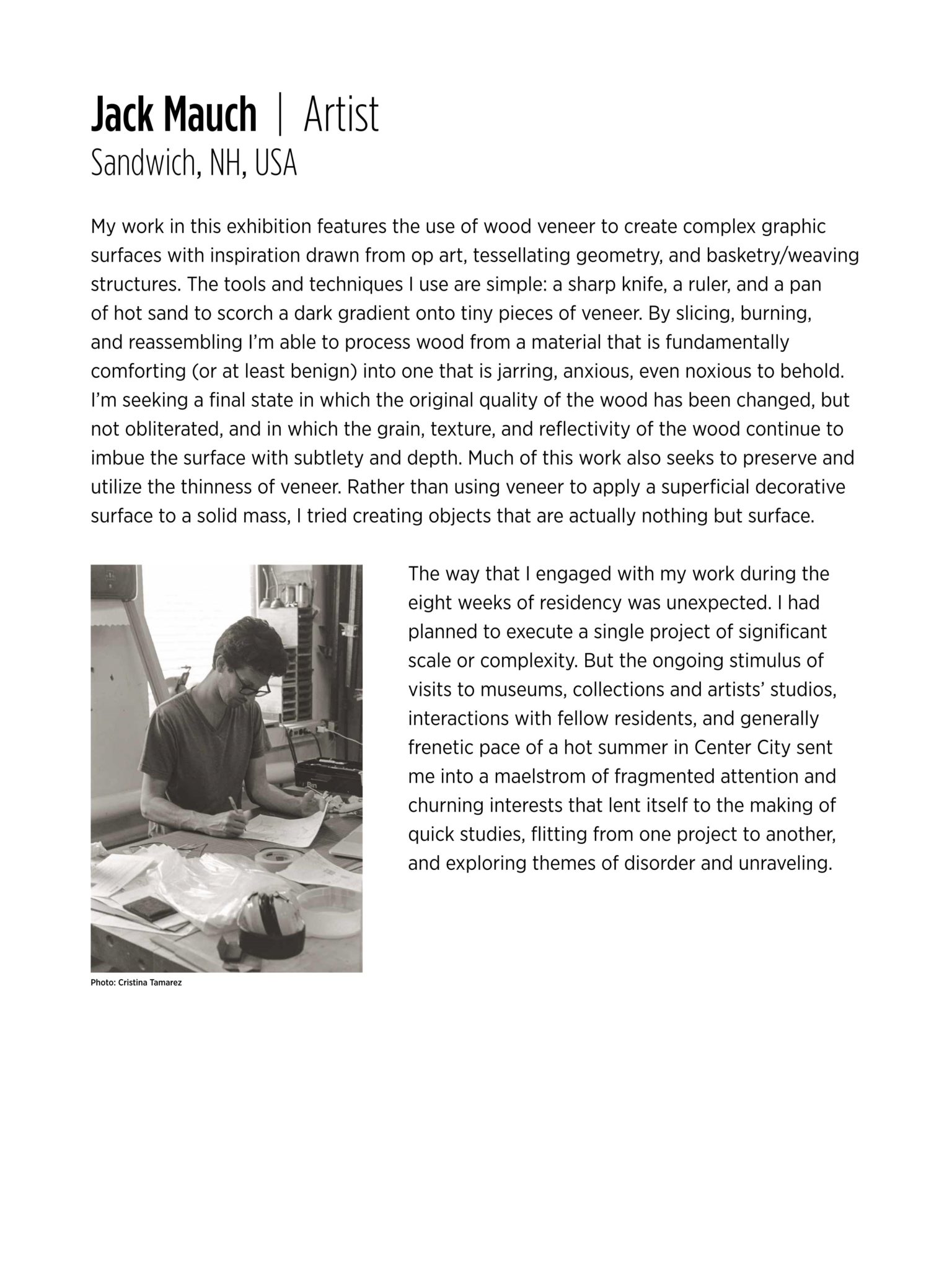 This year’s Windgate ITE Program & Exhibition is generously supported by the Cambium Giving Society members of The Center for Art in Wood, donors to the Windgate ITE appeal, the Bresler Family Foundation, National Endowment for the Arts, Pennsylvania Council on the Arts, Philadelphia Cultural Fund, William Penn Foundation, and Windgate Charitable Foundation. In-kind support was provided by Boomerang, Inc, Signarama Center City, Sun-Lite Corporation, and Winterthur Museum, Winterthur, Delaware.
