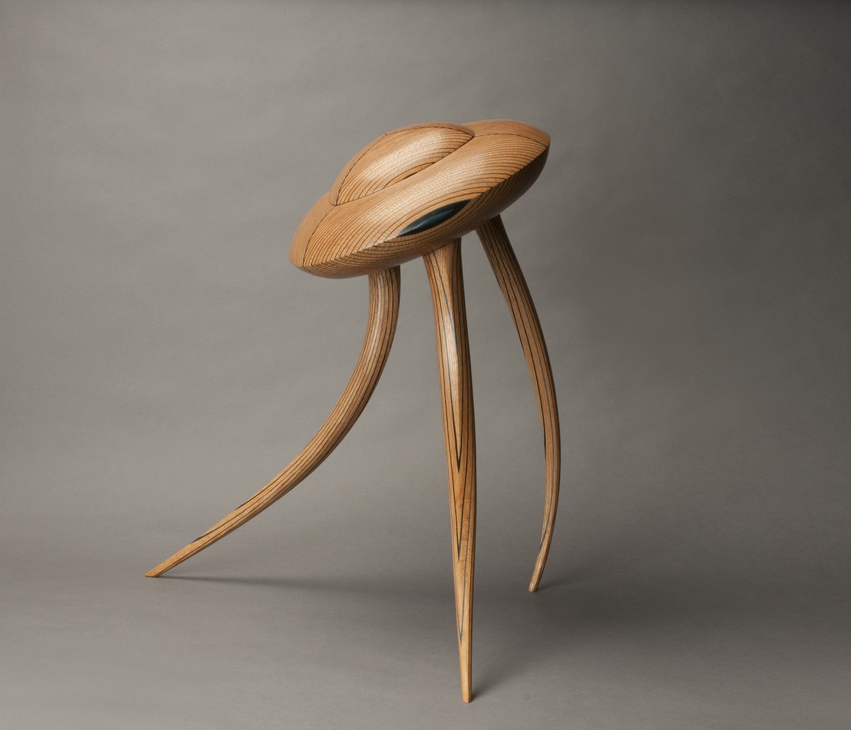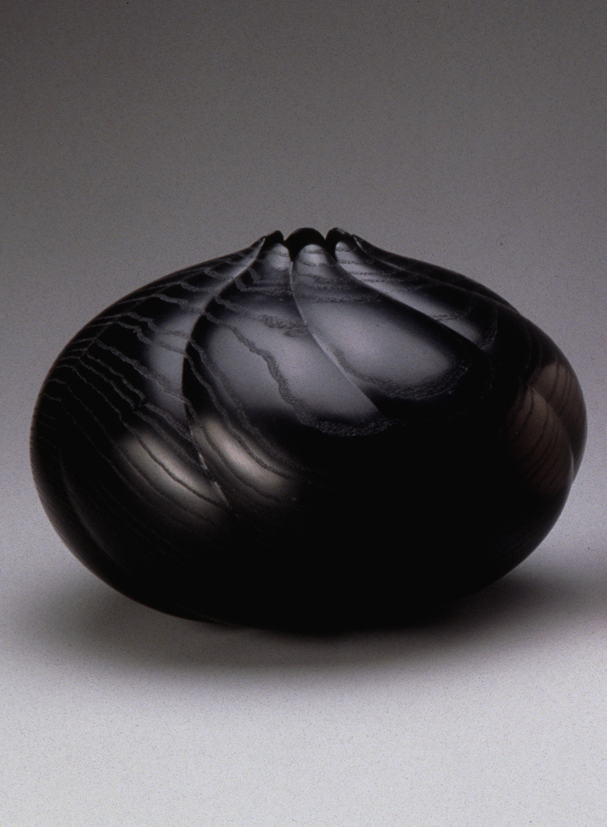 Appreciation of “Sculpture” ultimately defines the collectors’ growth and pursuits of new work. As knowledge and exposure to work in artists’ studios, galleries and craft exhibits expand; the collectors grow to appreciate the intertwining of artists’ concepts, their selections of materials and the resulting embodiment of intellectual ideas into free forms. Through this third selection from the Wood Turning Center’s museum collection, the couples capture how their passions for collecting wood art warmed them and drove them – first to tiptoe into basics, then to step up to varied shapes and finishes, and finally to jump fully-dressed into appreciation of contemporary sculpture that they probably bypassed as beginners.