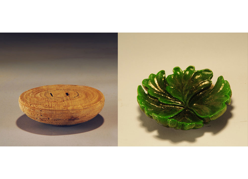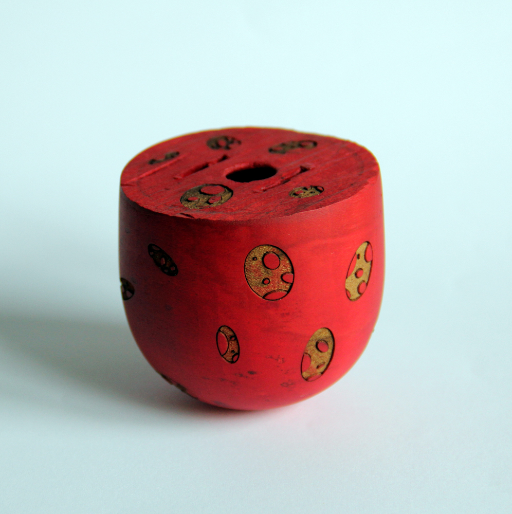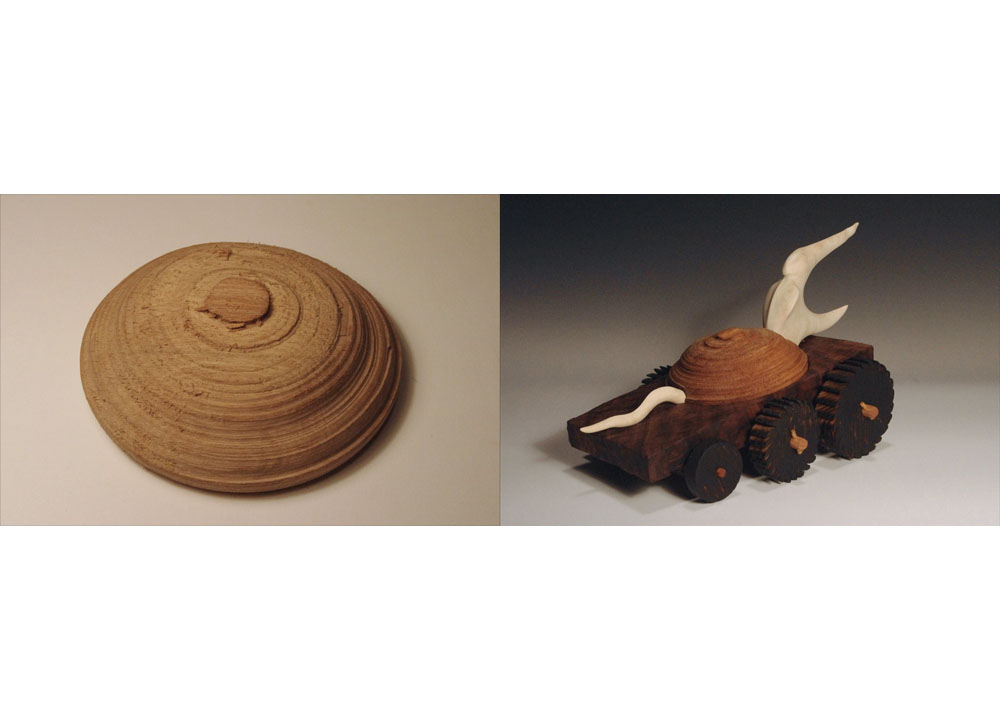The CORES, of various woods, are unique in color, size and shape, depending on the interior shape and diameter of Robin’s bowls. They range from 2” x 2” to 3” x 4.” Many are hand-sized; a few are the size of two hands. Robin Wood donated to the Center 100 cores to be used for this exhibit. The Center sent out a core to select artists unseen who have agreed to rework and turn the Core into a new piece of art. Sales of the work exhibited in Robin Wood’s Cores Recycled will go to benefiting the Center’s 2013 programming.